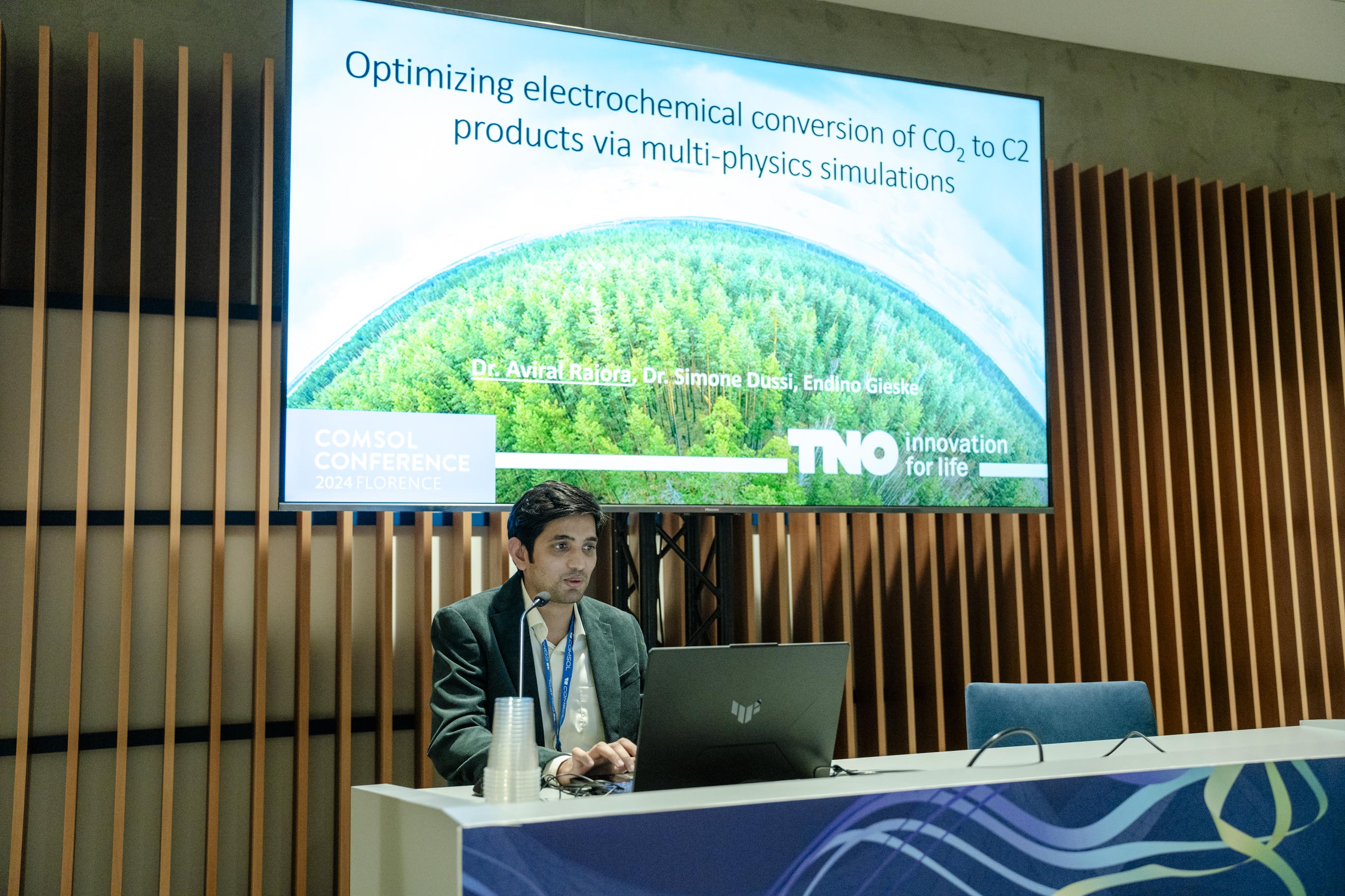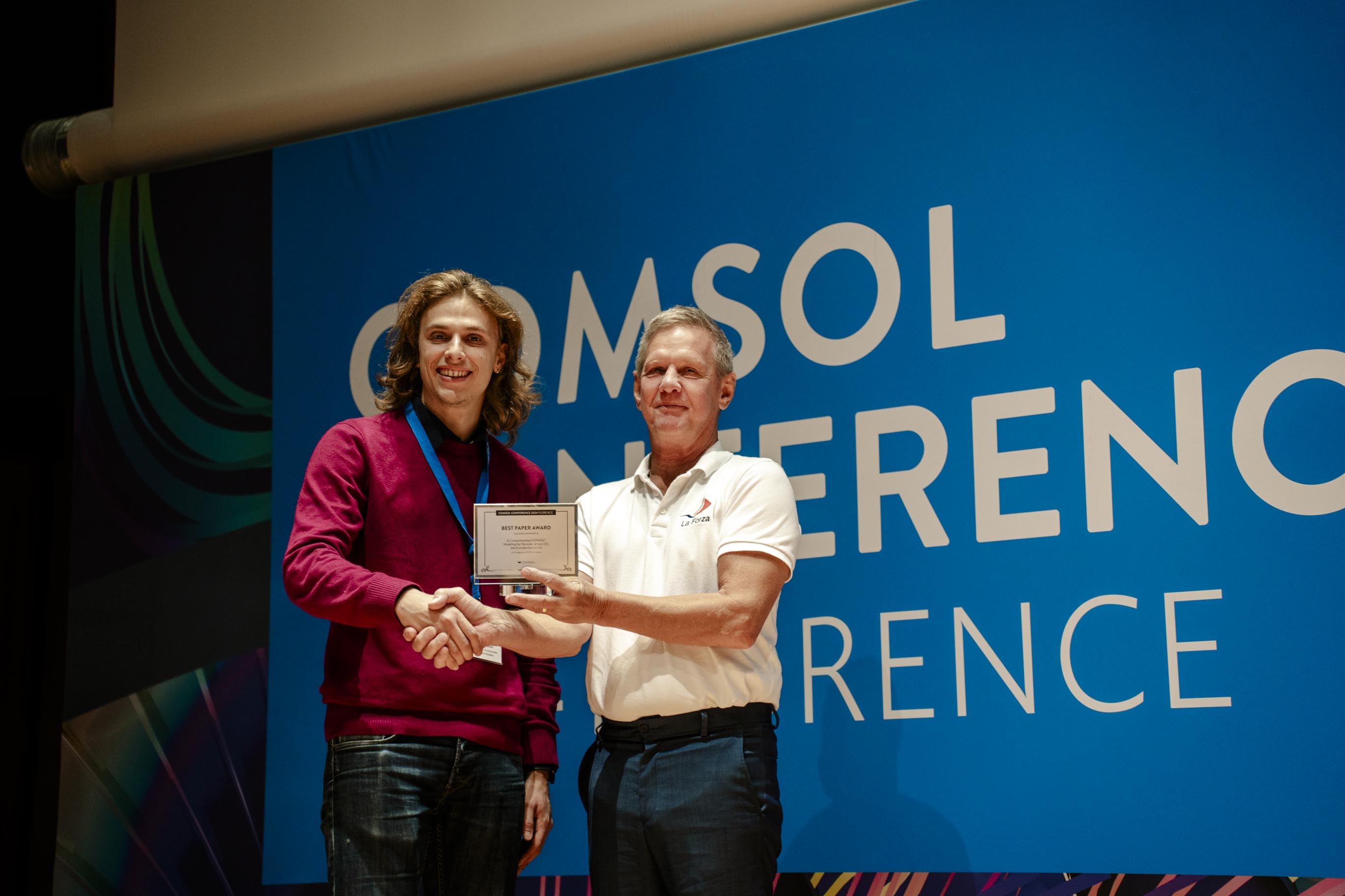 Electrochemical processes for decarbonization enable the reduction of CO2, playing a valuable role in the mitigation of climate change. For their paper focused on this topic, Matteo Agliuzza, Candido Fabrizio Pirri, and Adriano Sacco won the first Best Paper award. In their paper, titled “A Comprehensive COMSOL Modeling for the Solar-Driven CO2 Electroreduction to CO”, the team cover how they developed a model of a photovoltaic-electrochemical (PV-EC) device that replicates experimental data for the conversion of CO2 into CO. The model can be used to predict the performance of the device and inspect chemical conditions at the electrode surfaces.