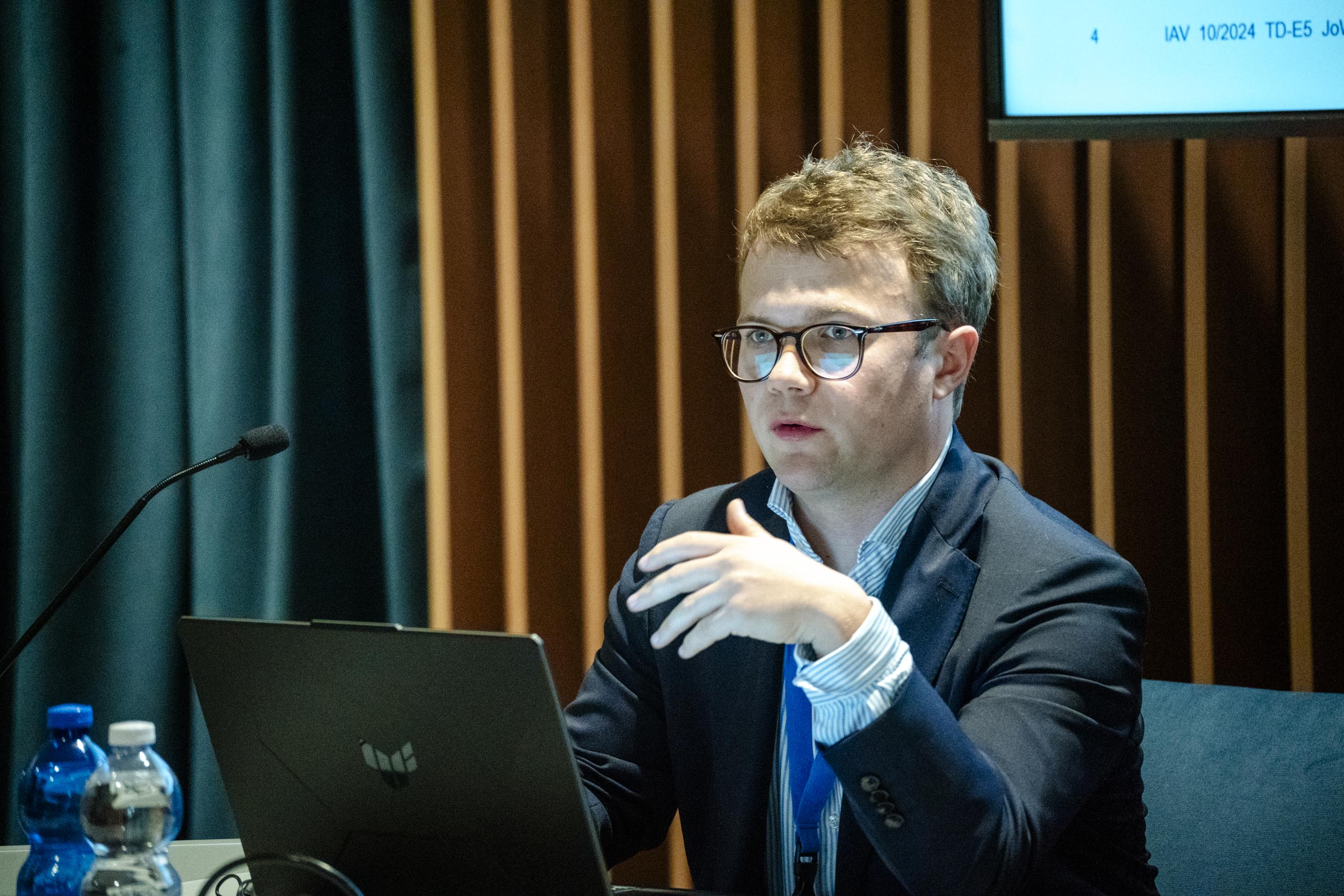 • Robrecht Abts of the Department of Mechanical Engineering, KU Leuven, during his invited talk on thermal analysis for freeform FFF printing.Robrecht Abts of the Department of Mechanical Engineering, KU Leuven, during his invited talk on thermal analysis for freeform FFF printing.