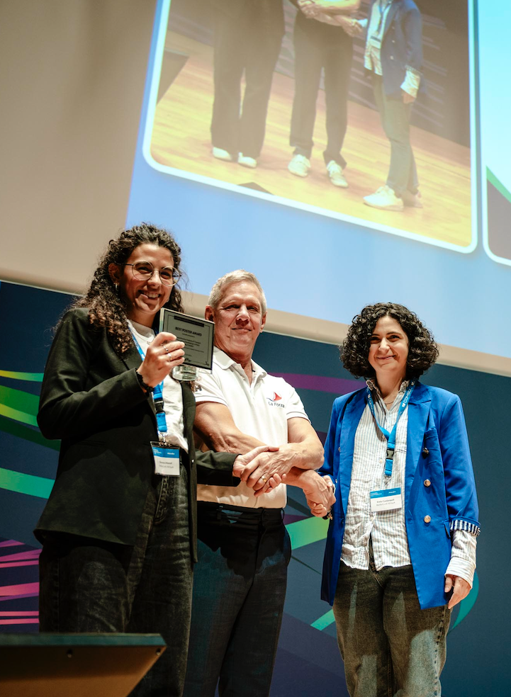 Ibrahim Erbay accepting the Best Poster by Popular Vote award (left) for his and Yury Rochev’s poster (right).